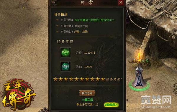 1、奖励丰厚。玩家每日有十次机会进入副本开始除魔任务,完成任务即可获得海量经验和功勋值!