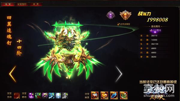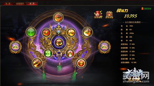 随着法宝阶数提高,玩家还可以激活圣灵为法宝进行更强力的进阶。消耗法宝进阶石解锁圣灵系统,解锁后可镶嵌特定圣灵材料来激活额外属性。在圣灵中分别有生命、防御、攻击、韧性、闪避和全属性六种类型,它们分别具有绝对值加成和百分比加成,如果能够将全部圣灵激活并提升其相应的等级,角色战力就会有质的飞跃。