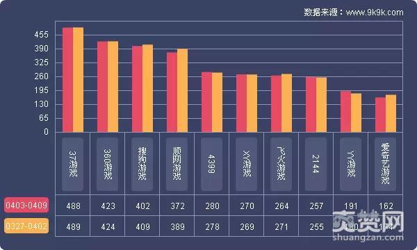 点评:《乾坤战纪》本周开服略有增涨,其在YY游戏开服频率稳定在4服/天。另有多家一线平台保持1服/天的开服频率。