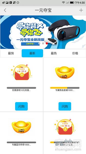 1元夺宝,只需一元就有机会收获惊喜。随着电商、众筹等概念逐步深入群众,51游戏APP将两者完美相结合,推出回馈玩家专享活动--“一元夺宝”。每个用户只需1元就有机会获得一件奖品,iPhone 7,iMac、Apple Watch,手机话费,VR眼镜……各种大奖应有尽有。手机轻轻一点,新鲜好玩,给玩家最惊喜最实惠。