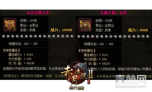 其实,在9377《赤月传说2》里,武魂是一个独立的系统,也是玩家角色死亡后不会掉落的其中一个特殊装备,9377《赤月传说2》武魂装备主要有职业攻击、暴击威力、内功恢复和内功值四个属性,由于武魂本身是一个装备,因此玩家可以将武魂装备进行强化,强化后你可以获得更强大的属性。