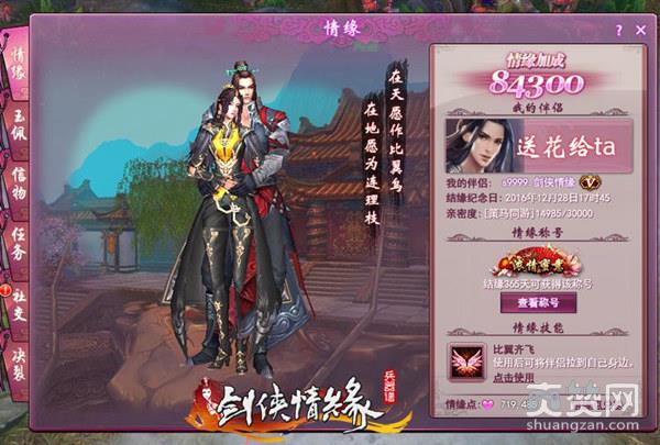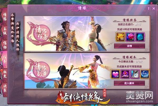 成功结缘后,玩家将开启玉佩系统、信物系统、情缘任务、情缘副本等一系列玩法,每一项都与双方的战力和成长息息相关。玉佩可以进行强化、洗练和进阶,助于提升角色属性和战力;两人合体携手共战情缘日环任务和情缘副本,可以获得元宝、经验等丰厚奖励作为回报;收集情缘任务或情缘副本中掉落的信物道具,可激活相应的信物,使自身实力再度得到提升!除此之外,结缘的双方还会获得情缘专属神技——比翼双飞,一眨眼的功夫就让你飞到心爱的人身边,陪Ta共度良宵!