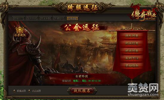 37《传奇霸业》跨服公会远征在开服第15天起,每周二、周五,00:00-12:00进行报名,达到报名条件的公会,由会长进行战队编队并报名;活动当天12:00-18:00,已报名的公会便可发起约战,约战获胜方可获得海量元宝奖励。如果约战不成功,系统将进行自主匹配,强强交锋也可以产生激烈的火花。