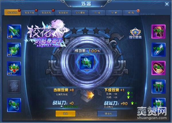 想要PK,首先必须要有好的装备,在37《校花的贴身高手》的【炼器系统】可帮你强化装备,选择某件装备后,消耗一定的装备强化石即可对其强化,强化后可以获得更高的角色属性及战力加成,除此以外,玩家还可以按照自身需求对装备进行合成、分解和熔炼等操作。