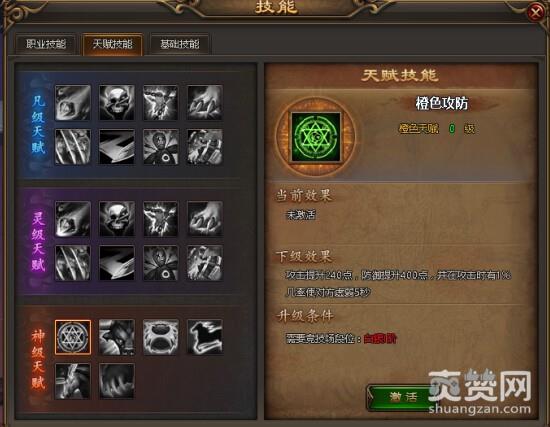 天赋技能分凡级天赋、灵级天赋和神级天赋三种。需要竞技场段位达到指定阶段,方可激活强大的天赋技能,激活后仍可提升天赋技能等级。
