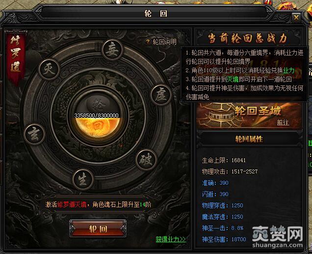 3.轮回道提升到灭境即可开启下一道轮回。