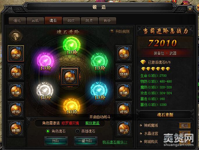 目前小编突破了畜生道,就能够把魂石都升阶到13阶了,通过修罗道灭境后,还可以升阶到14阶。还没达到的小伙伴要多多加油咯!