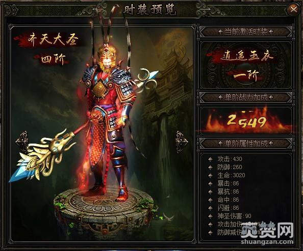 在游戏中你获得了第四阶的时装可穿戴齐天大圣的造型,获取书籍可获得齐天大圣的个性技能。