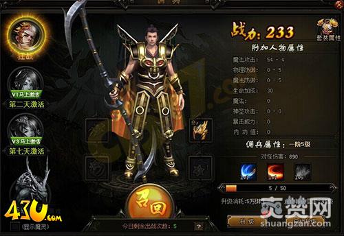 作为一个立志行走江湖的大侠,身边怎么能少个鞍前马后,吆五喝六的角色呢?43u《赤月传说2》灵宠升级优化版佣兵系统血性来袭,助你惩恶扬善,行侠仗义,迎娶白富美,走上人生巅峰从此不再是梦想!战、法、牧三种佣兵,玩家初始默认激活的是狂战佣兵,您可以通过充值VIP立刻激活法王或者天尊也可以通过连续登陆游戏而免费激活。