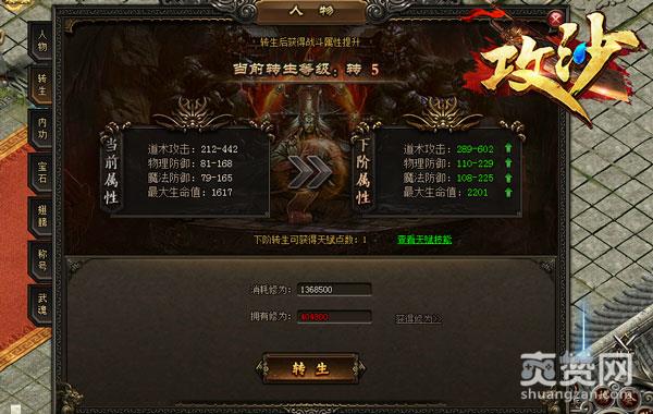 2、转生将为角色带来基础属性大量提升,还有珍贵的天赋点打造属于自己的高级角色,转生意义重大。