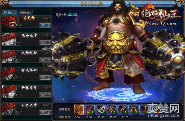 在37《绝世仙王》的BOSS之家系统中,点击列表中任意BOSS项,可在界面右侧预览该BOSS的外观、击杀奖励、刷新等相关信息,在BOSS列表,玩家可从BOSS项右端的【前往】按钮,进入对应的BOSS副本,在这里可要注意了,所有BOSS被击杀后都有一个复活时间,所以玩家要注意掌握进入时机,以免错失良机。