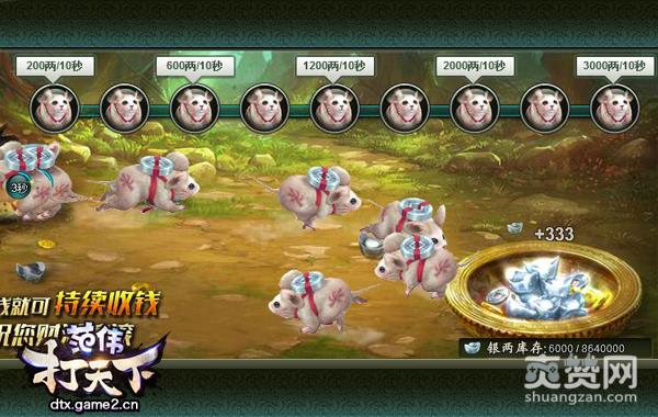 在《范伟打天下》中,金钱鼠最多可以激活9只,最高为玩家提供每秒300两的银两收益,从几十万存款到百万存款,只需要分分钟就可达成。