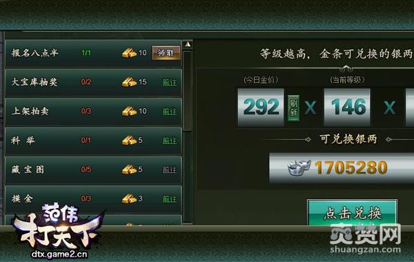 在游戏中,玩家每天都可以通过完成指定的任务,获得数量可观的金条奖励,比如说上架拍卖、参与科举玩法、进行跑腿任务等等。每次撩妹,掏出一堆金条,那场面可是想想都能流口水啊。