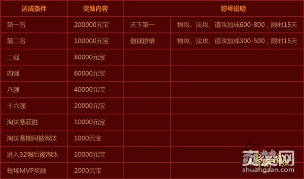 热血兄弟,激情厮杀!《传奇霸业》第四届王城争霸赛作为跨服狂欢竞技,满足众多玩家期待,除了享受战斗快感和胜利荣誉,更有众多奖励值得玩家倾其所有、放手一搏。每一次公会对抗都有元宝相送,决赛第一名获得200000元宝,第二名获得100000元宝,进入32强可获得10000元宝,前方战火密集,元宝密集,快拉响集结号决一死战吧!