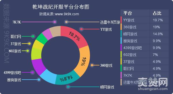 点评: 《乾坤战纪》本周继续维持着良好的发展态势,开服数增涨了5.3%;新增分布占比平台7K7K、迅雷牛X页游。