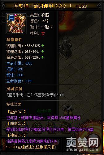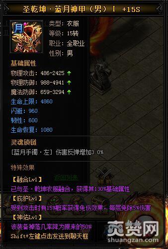 按照上述公式,就能合成圣乾坤·蓝月神甲II,下面再让我们看一下它有哪些独特的属性和特殊效果吧。
