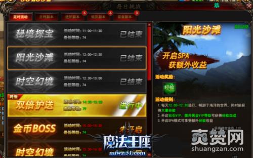 “阳光、沙滩、海浪、仙人掌,还有一个老船长”,这是我们日常童谣中希冀的生活方式。一个只有自己和爱侣的海滩,享受着日光浴,享受着休闲舒适的下午茶,慵懒、轻松、惬意的美好生活,这一切在51《魔法王座》中都可以实现。虽然这里没有周董和你一起日光浴,但可以在里面找到其他的玩家伴侣。51《魔法王座》游戏只需要有74级就可以加入每日挑战,定时活动12:00~12:30阳光沙滩,一起开启美国西海岸的日光度假之旅。参与阳光沙滩活动,主要赚取经验奖励。畅游于海洋世界,同时能获得大量经验,岂不是美事一桩?活动开启的半小时内,51《魔法王座》黄金和钻石VIP将获得额外的经验加成。同时,开启SPA模式可享受额外经验收益。