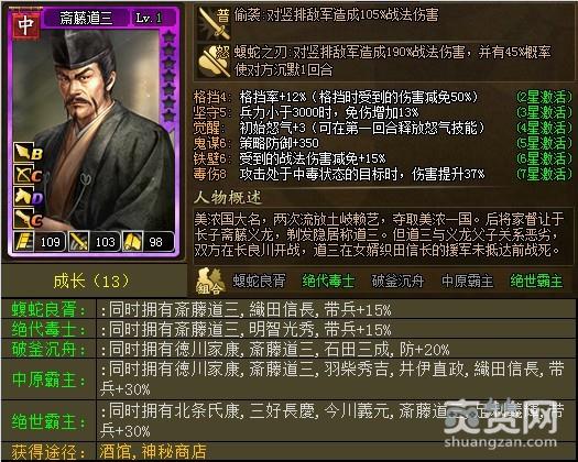 他是战国时代第一阴谋家,诡变无常,人称为“美浓蝮蛇”。据说道三因为精通枪术而受聘于长井氏,后来篡夺长井家业,改名为长井规秀。长井氏是美浓守护代斋藤氏的重臣,有了这个地位,他更进一步篡夺了斋藤家业,改名为斋藤秀龙,法名道三。