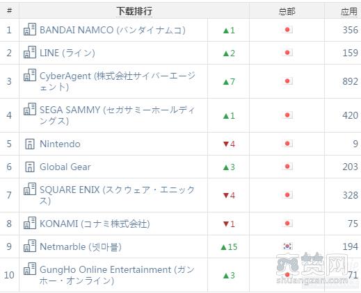 最后再来看一下公司收入排行,mixi、BNE以及索尼继续霸占榜单的前三位。LINE和GungHo的名次发生交换,分别位列第四和第五。相对来说日本地区畅销榜的排名已经基本固化,很难出现新的面孔。