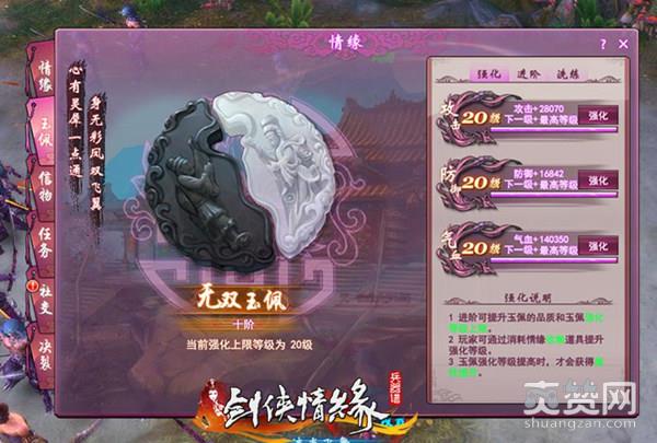 在武侠世界里,不仅有刀光剑影的激情厮杀,还有江湖儿女的铁血柔情。《剑侠情缘兵器谱》推出全新“情缘系统”,让神仙眷侣能够喜结连理,谈一场轰轰烈烈的恋爱。双方结缘,不仅可以增进感情,更能够互惠互利,享受情侣之间独享的福利。双方结缘达到一定天数后,可获得稀有的情缘专属称号;已结情缘的玩家还可使用专属情缘技能,一键传送到心爱的伴侣身边;当情缘积累到一定值可开启玉佩功能,强化玉佩可额外增加角色的属性;完成情缘日环任务和情缘副本,还可领取元宝、经验等超丰厚奖励!