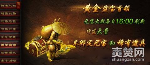 玩家们可以在每天的16点,去元宝大殿刷新黄金盗宝首领,成功击杀他们的话,就会掉落海量不绑定元宝和稀有道具了。
