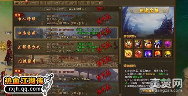 在腾讯《热血江湖传》的驯兽宝藏副本中,每进入下一层需向NPC提交一定数量的宝藏通行证,通过击杀精英怪与小怪有极大几率掉落宝藏通行证。击杀每一层的BOSS都有机会获得驯兽装备,层数越高怪物掉落的驯兽装备阶数也越高。想要盗取更多宝藏,千万不要错过全新五层驯兽宝藏副本哦!