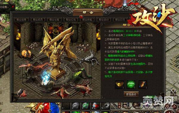 帮会守护是一个帮会定时活动,每周日20点30分开始,活动期间成员们进入场景守护雕像,将获得大量奖励。