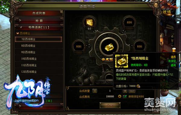 3、使用极品稀有材料西域精金,可百分百保证强化成功。