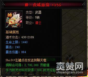 神虎威·蓝月神剑I+12500元宝=神·虎威道扇+蓝月神剑