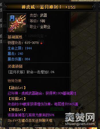 神虎威·蓝月神剑I+12500元宝=神·虎威之刃+蓝月神剑