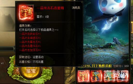 看看跨服总榜,如果积分高达上百万就能上榜,上榜的好处是什么呢?珍贵的一品/二品/三品攻击石选鉴箱都是你的。