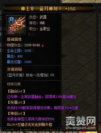 神主宰·蓝月神剑I+22500元宝=神·主宰之刃+蓝月神剑