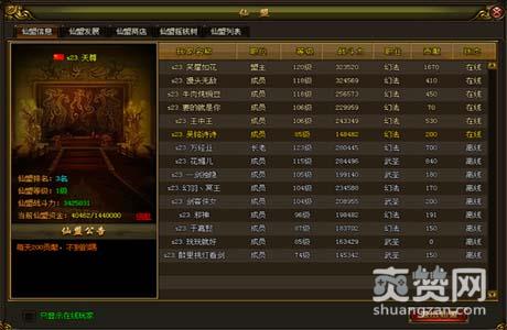 仙盟信息会显示玩家的名称、职位、等级、战斗力、职业、贡献、状态。