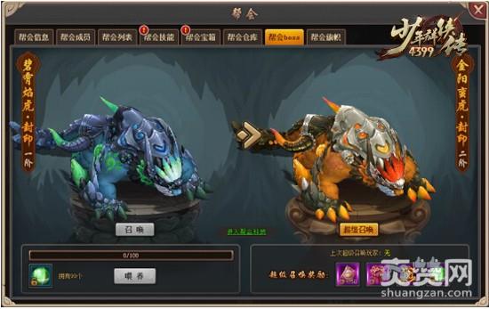 1、帮会成员可以和其他帮会成员一起击杀帮会BOSS获得丰富奖励。2、帮会BOSS可以进行喂养提升等级,等级越高,击杀后获得的奖励越多。