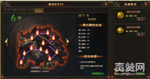 玩家通过击杀各个地图当中的BOSS获得积分,击败越强大的BOSS获得的积分越多。参与击杀BOSS的玩家获得的BOSS积分彼此独立,互不影响。通过各种活动、商城购买等可获得BOSS精魄材料,使用后可获得大量BOSS积分。击杀BOSS,获取积分,提升属性,杀怪PK更轻松!