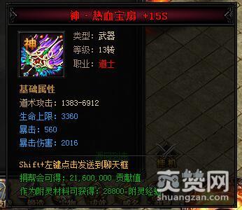 神热血·蓝月神剑I+32500元宝=神·热血道扇+蓝月神剑