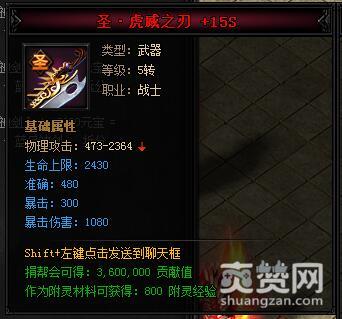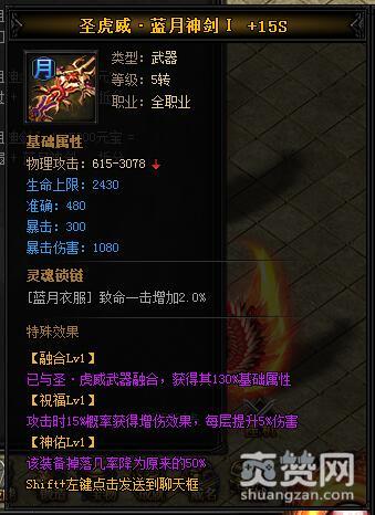 圣虎威·蓝月神剑I+15000元宝=圣·虎威之刃+蓝月神剑