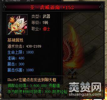 圣虎威·蓝月神剑I+15000元宝=圣·虎威道扇+蓝月神剑