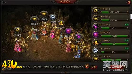 作为一个辛苦的打工仔,小编最大的愿望就是天上掉馅饼,每天躺在家里还不愁吃喝,这样的日子是多么美好啊……哎,毕竟只能想想,小编还是要努力工作滴。等等,小编好像发现了什么了不得的东西,黄金矿工,独属于43u《新焚天之怒》的永久免费劳动力,为你挖金币、绑金、材料碎片、特戒、甚至元宝!无论刮风下雨,即使角色下线他们都永不停息!