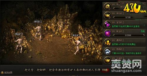 当然了,这些可爱的矿工可不是轻易获得的,需要你花元宝,或长登游戏才能获得:其中绑金矿工可立即获得,而绑元矿工要登录第二天即可获得,而比较珍贵的宝石矿工需要登录第四天或者花888元宝即可激活。转生矿工需要登录的第七天或者你是游戏的VIP3.同理,魂珠矿工需要登录第14天或者你是VIP5才可获得。特戒矿工和元宝矿工只能花元宝激活啦,但是他们的收益可远远大于你的投入,越早激活越快变强!