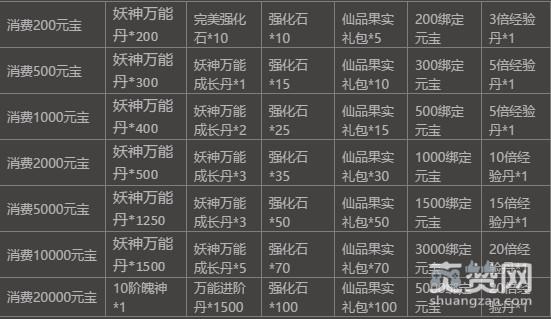 活动内容:玩家只需连续充值相应元宝即可获得奖励