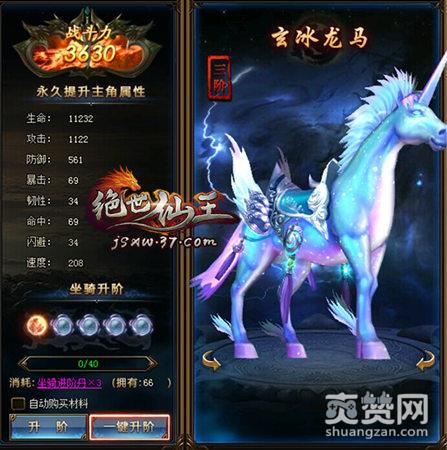 在37《绝世仙王》中,坐骑不仅是玩家强而有力的战斗伙伴,在自身各种属性获得提升时,角色也会相应地获得BUFF,当坐骑达到指定阶数时,只要点击骑灵/骑魂按钮,消耗相应道具,即可增加坐骑属性,并附加到人物属性上,真正实现“大家好才是真的好”。