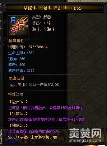 圣皓月·蓝月神剑I+30000元宝=圣·皓月之刃+蓝月神剑