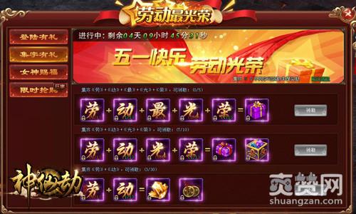 除了登录礼,当然少不了送祝福!“劳动最光荣”集字活动隆重登场,全服一起疯狂集字,向热爱劳动的朋友们表白吧!活动期间,4366《神仙劫》的仙友们可以通过野外杀怪、副本等途径获得材料。只要收集到了“劳动最光荣”,就能获得神秘大奖!听说只有勤劳的小伙伴才有的喔!