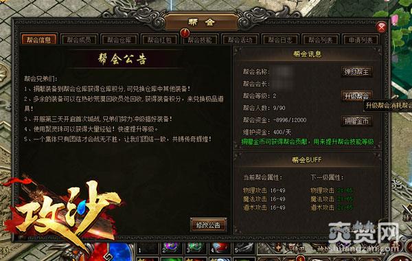 在哥们网《攻沙》中,玩家可以选择一人独自征战玛法大陆,也可在孤单寂寞的时候选择加入帮会。加入帮会将与来自五湖四海的兄弟姐妹们并肩作战,共建美好和谐帮会。正所谓人多力量大,建设帮会还要靠全体成员齐心协力: