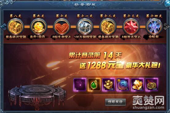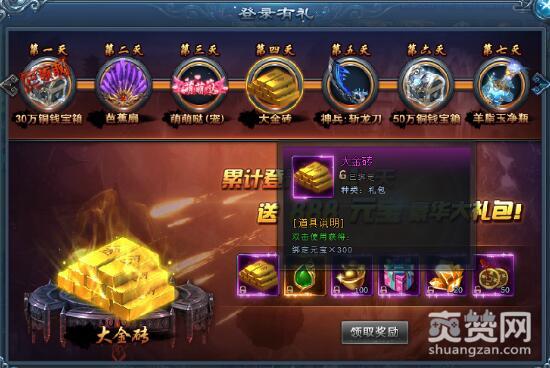 嚯,第四天送金砖了双击使用可得300绑定元宝,刺激。第五天、第六天一直到第十四天,傲天神仙劫每天都会有各种豪礼相送,不信你看啊。