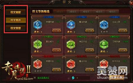 51《赤月传说2》符文系统界面有符文装配、符文商店、符文获取。