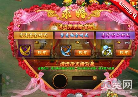 等级达到之后的玩家就可以对自己的在线好友进行求婚。当然求婚可是一件神圣隆重的事情,所以和现实生活中一样,需要求婚戒指作为定情信物哦!因为都是江湖中人以天为盖地为庐,所以对房子就没有什么要求啦!是不是让很多男性同胞松了一口气呢!所以求婚时购买一个戒指就可以了,购买的戒指不同,加的属性也不一样,侠侣双方是都能够享受到戒指属性加成的。