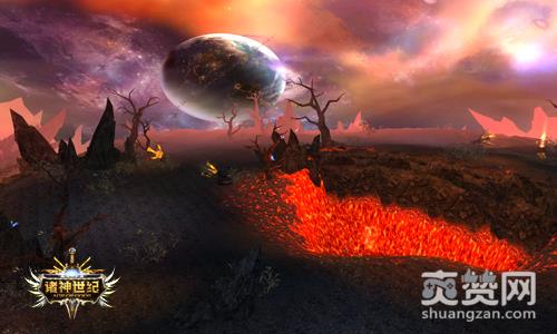 熔岩赤土,滚烫的岩浆从身旁流淌,大地随时冒出猩红的光亮,所望之处,寸草不生。你可曾幻想过你能离火山如此之近?《诸神世纪》的燃烧平原就是这么一个地方。在这里,目之所及都是燥热的熔岩,一条条岩浆跳动着,融合成宽阔的河流,一路奔腾而去,让人感受到另一种生命的壮阔之感。