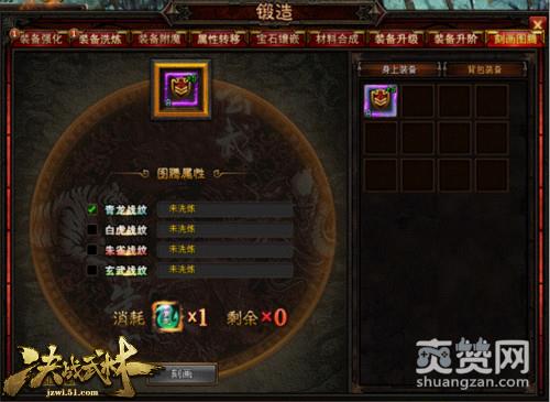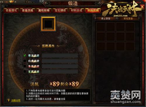 图腾战纹虽然牛逼,但也有一定的特殊性,刻画后无法退回或者改变状态;除非新的战纹出现,再度用刻画覆盖掉先前的战纹。想来也忏愧,小编在51《决战武林》竟然连一个正儿八经的战纹都未曾看到,更别说刻画图腾了。打开锻造系统中的刻画图腾,背景中青龙、白虎、朱雀、玄武展示十分霸气。
